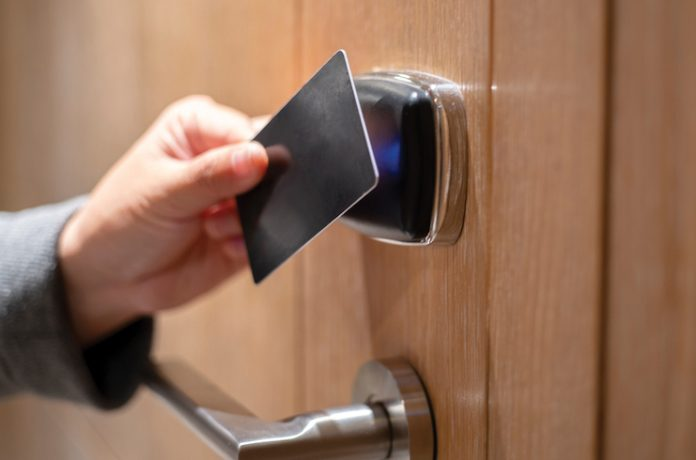 This facility uses a card instead of a traditional key to unlock the door of the room.