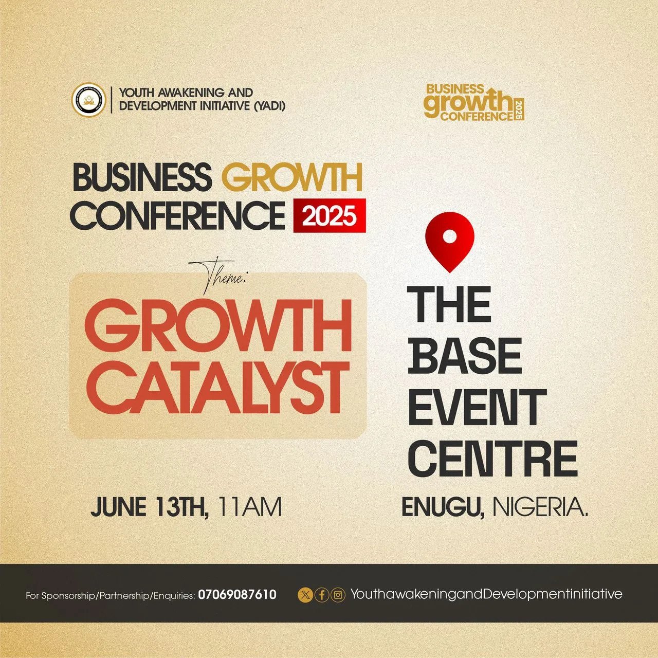The Business Growth Conference is a transformative and revolutionary event designed to inspire, equip, and empower youths, Students, entrepreneurs, startups, and aspiring business owners with the knowledge, tools, and opportunities needed to scale and succeed.With the theme “Growth Catalyst,” the conference will bring together industry leaders, successful business owners, and top igbo growth strategists to share insights on business development, innovation, and sustainability.Beyond the impactful sessions and networking opportunities, the conference will offer tangible benefits such as 1. scholarships for business-related courses, 2. access to business grants, and 3. empowerment packages to support participants in launching or expanding their ventures.