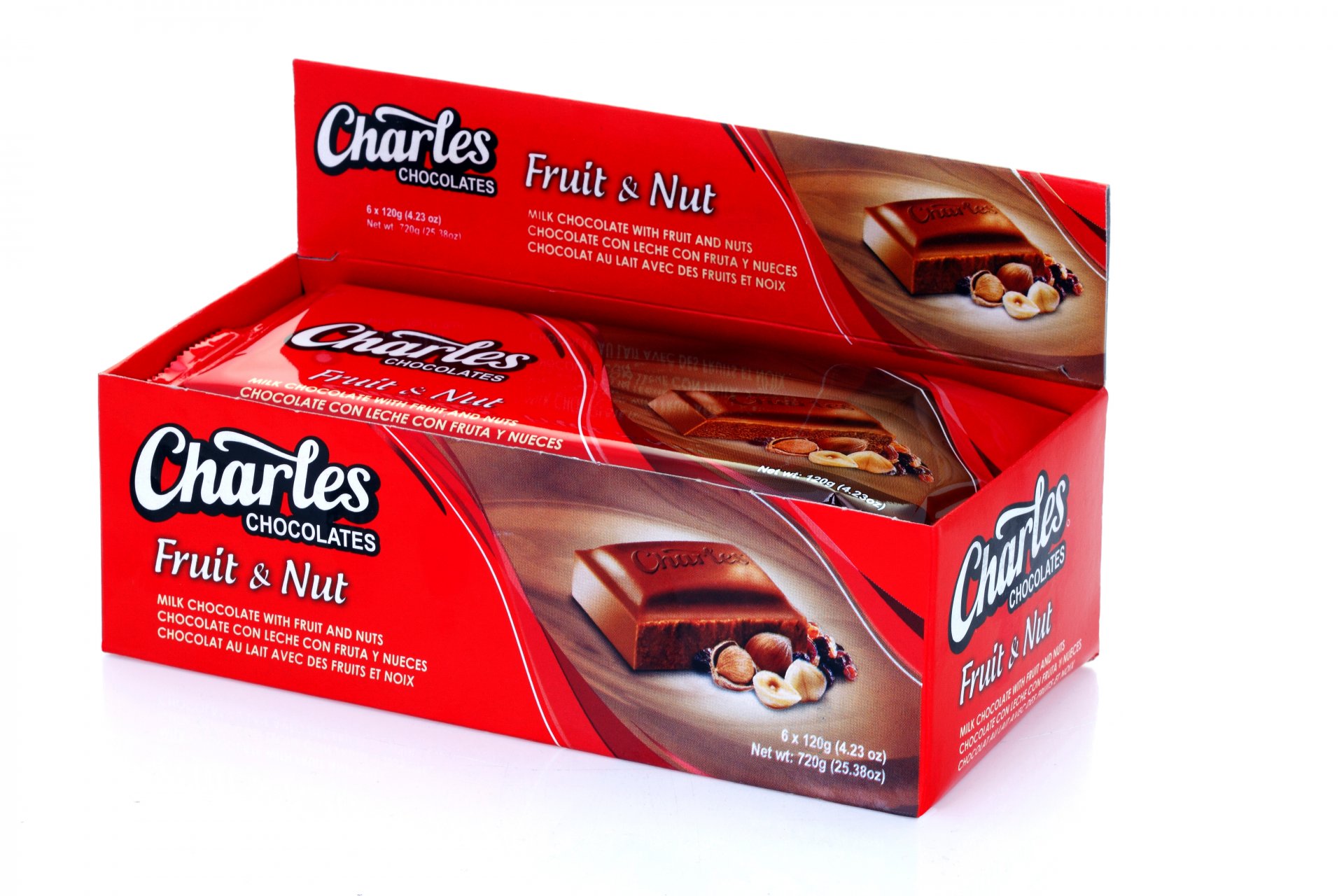 Charles Fruit & Nut Chocolate 6x120g (4.23oz)