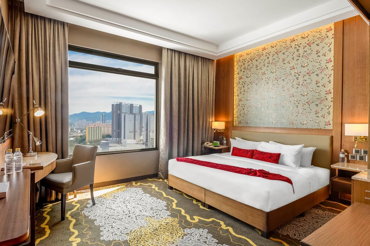 An elegant room designed for business travelers, featuring a work desk and high-speed internet.