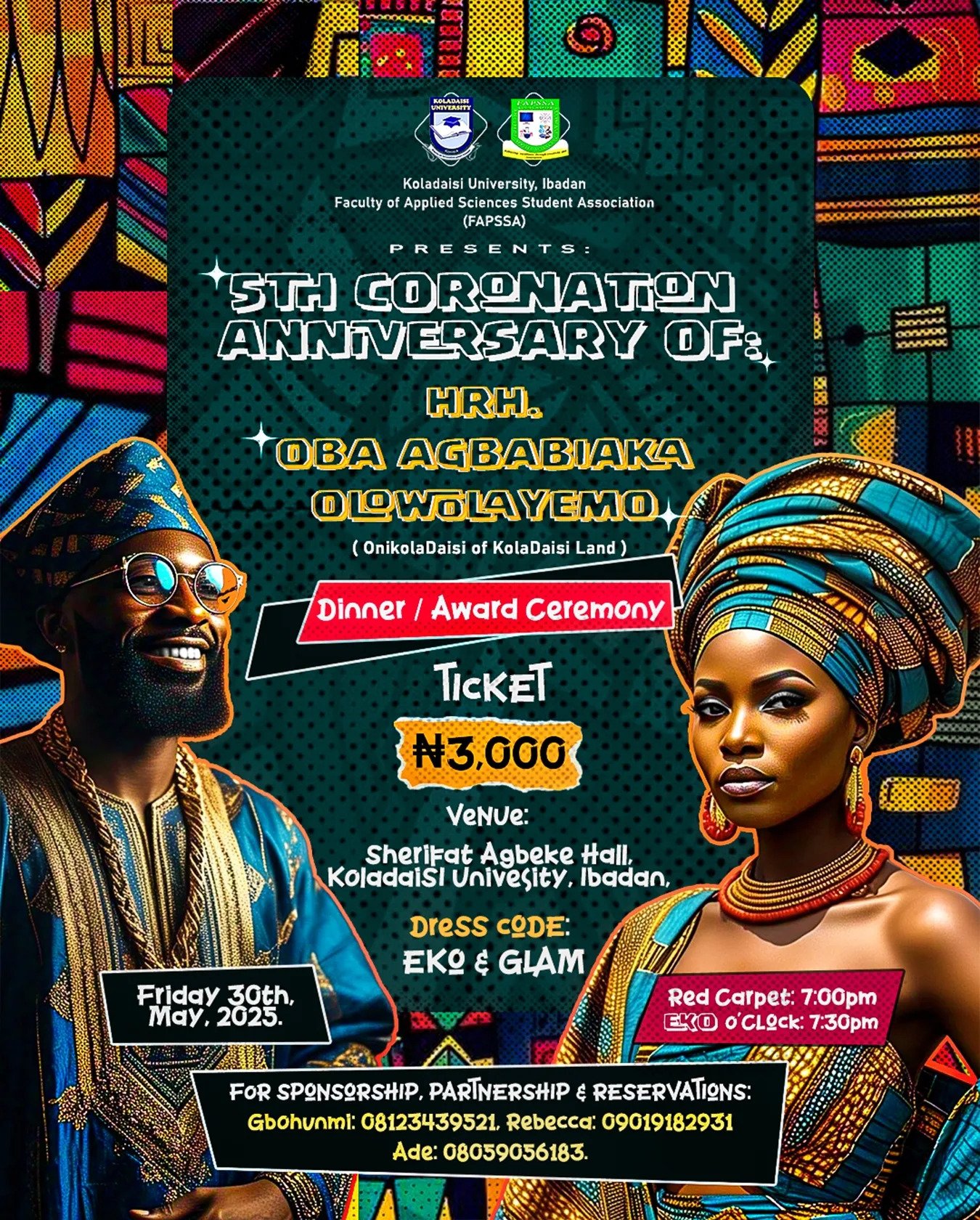 5th Coronation anniversary of King Agbabiaka Olowolayemo (Oni KolaDaisi of KolaDaisi land)Â