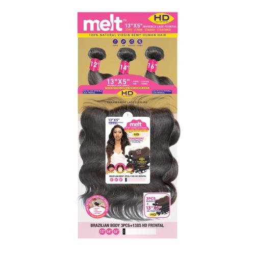 Janet Collection Natural Virgin Remy Human Hair Melt Brazilian Body 3pcs with 13X5 HD Free Part Lace Frontal Closure
