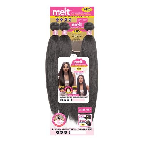 Janet Collection Natural Virgin Remy Human Hair Melt Brazilian New Yaky 3pcs with 4X5 HD