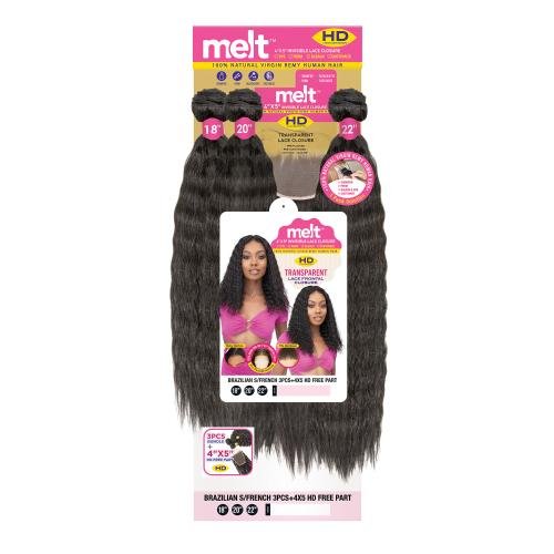 Janet Collection Natural Virgin Remy Human Hair Melt Brazilian S/French 3pcs with 4X5 HD Free Part Closure