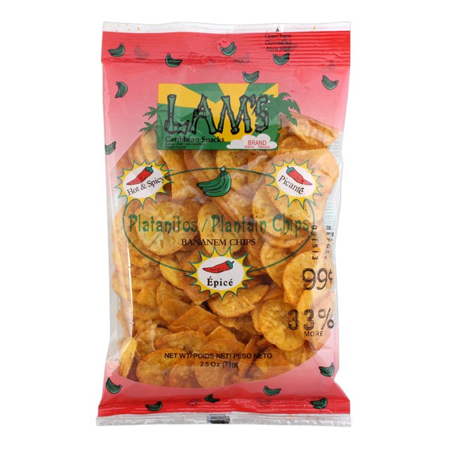 Lam’s Plantain Chips – Spicy, 3X2.5 oz/71 g. 3-Pack