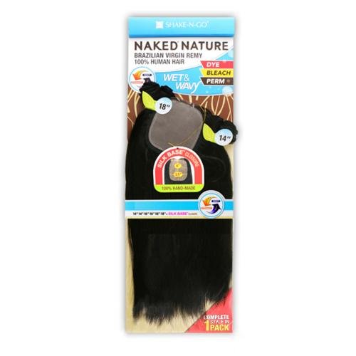 NAKED Nature Unprocessed Brazilian Virgin Remy Human Hair Weave Wet & Wavy Beach Curl 7Pcs (18"20"22" With Silk Base Closure)