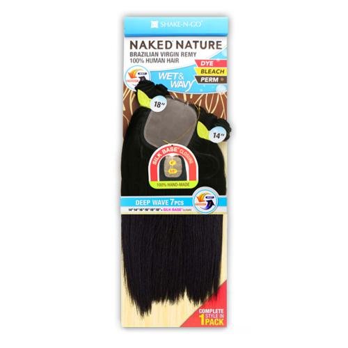 NAKED Nature Unprocessed Brazilian Virgin Remy Human Hair Weave Wet & Wavy Deep Wave 7Pcs (18"20"22" With Silk Base Closure)