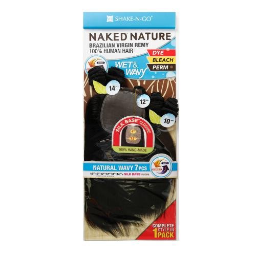NAKED Nature Unprocessed Brazilian Virgin Remy Human Hair Weave Wet & Wavy Natural Wave 7Pcs (10"12"14" With Silk Base Closure)