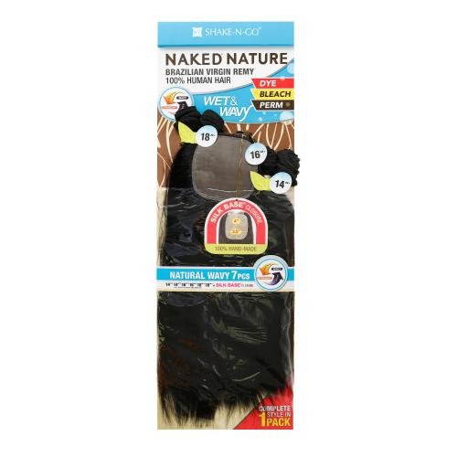 NAKED Nature Unprocessed Brazilian Virgin Remy Human Hair Weave Wet & Wavy Natural Wave 7Pcs (14"16"18" With Silk Base Closure)