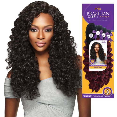 Outre Human Hair Blend Weave Premium Purple Pack Brazilian Boutique Virgin Deep 18", 20", 22"+Free Closure