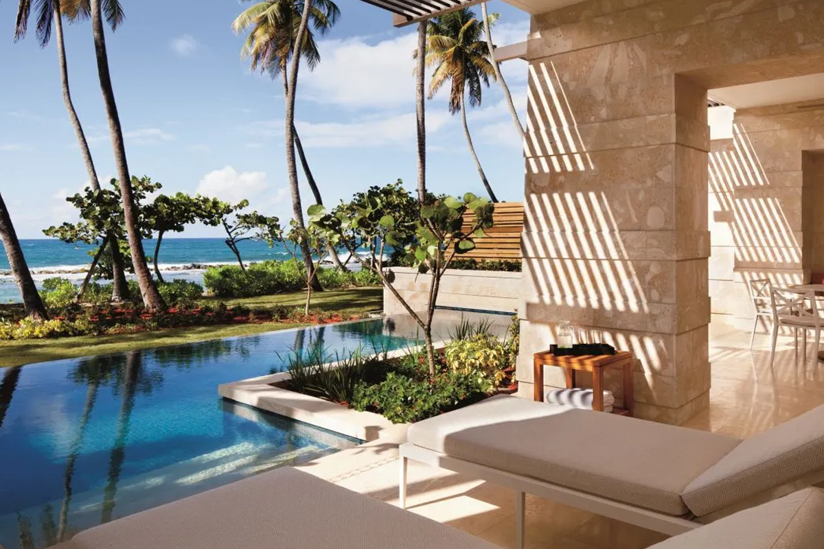 A stylish room with direct pool access, perfect for relaxation and comfort.