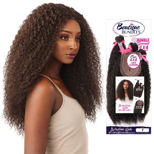 Sensationnel Human Hair Blend Weave Premium Too 3 Multi Bundles Boutique Brazilian Wave (18"+20"+22") + 4X4 Closure