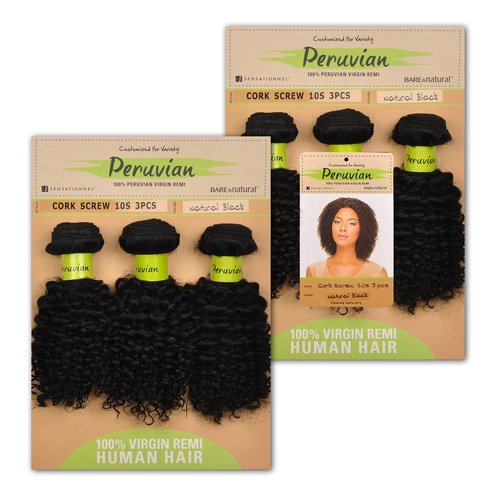Sensationnel Unprocessed Peruvian Virgin Remy Human Hair Weave Bare & Natural Cork Screw 10S 3Pcs