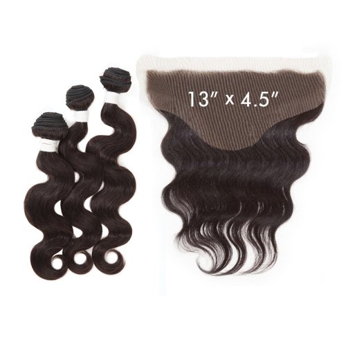 Sensationnel Virgin Remy Human Hair Weave Bare&Natural Body Wave 3pcs with 13"x4.5"Closure