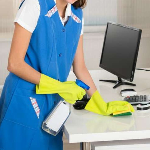 Vacuuming/mopping floors, dusting surfaces, and emptying trash bins.