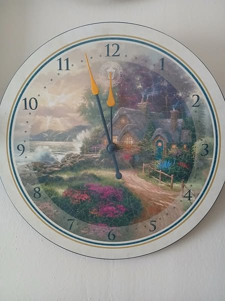 This is a Thomas Kinkade liscensed clock from Hallmark. It is in great shape and runs on 1AA battery.