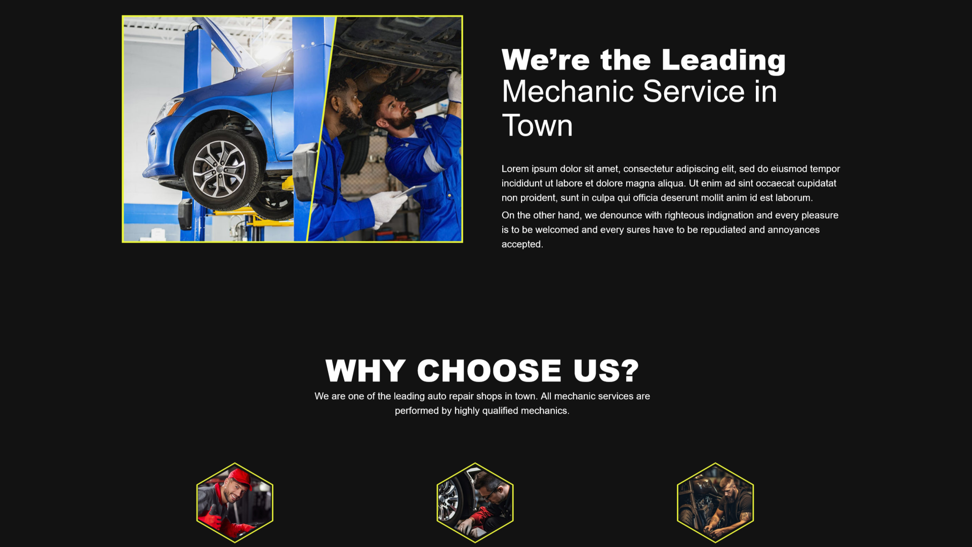 Display images of your workshop, tools, vehicle transformations, or satisfied customers to build credibility.
