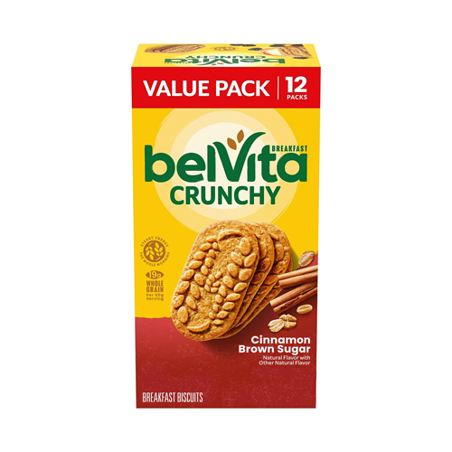 belVita Cinnamon Brown Sugar Breakfast Biscuits, Value Pack, 12 Packs (4 Biscuits Per Pack)
