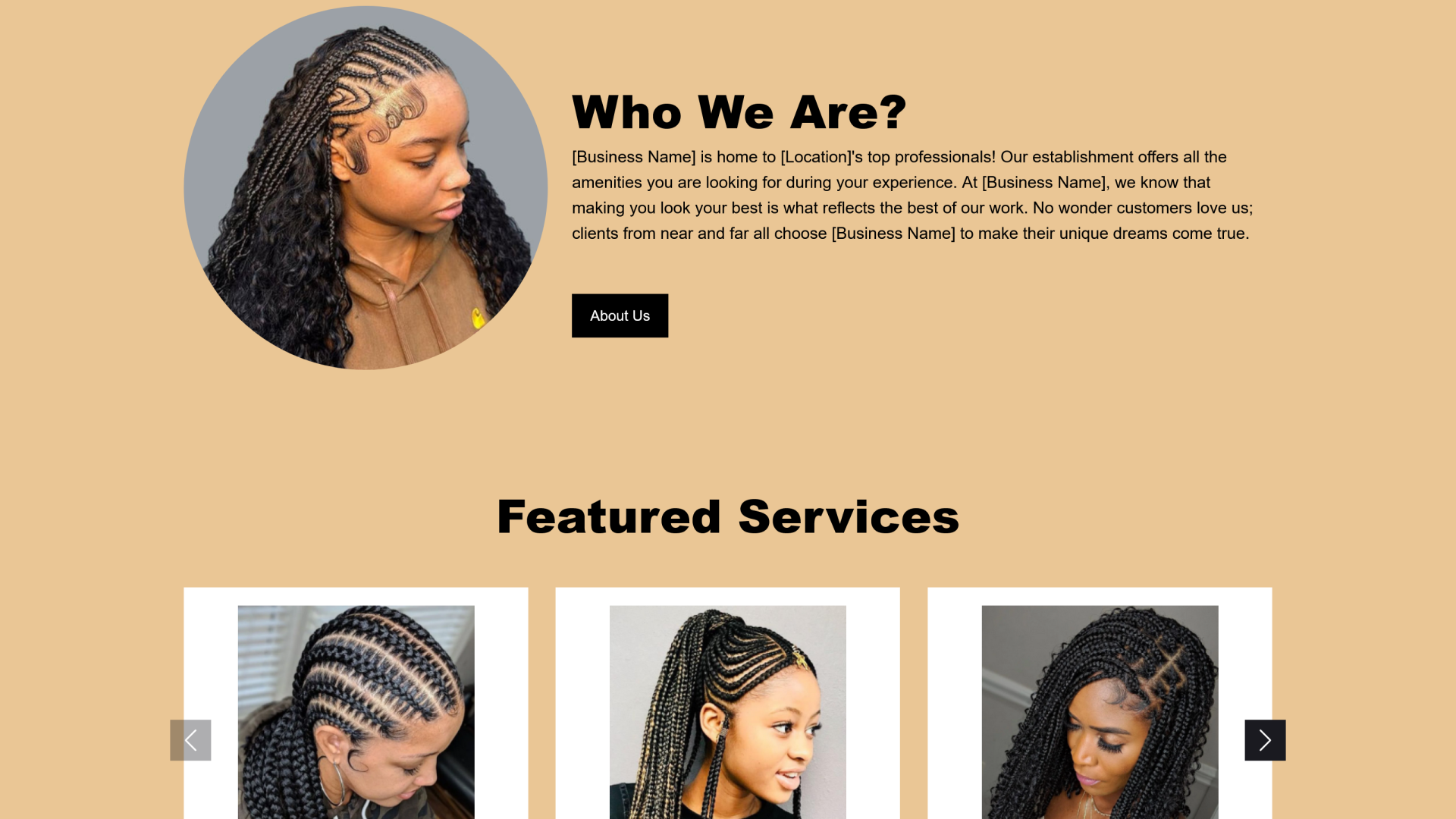 Braiding Queen is a modern Salon website template specifically designed for hair braiding specialists, beauty salons, and hairstyling professionals. This template is perfect for showcasing your services and artistry while providing a seamless experience for potential clients. With visually appealing galleries and essential pages, Braiding Queen empowers your brand to shine and attract customers effortlessly.