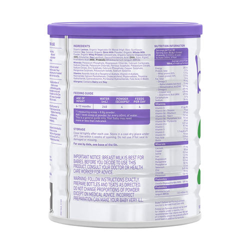 Bubs Organic Grass Fed Follow-On Formula Stage 2, Infants 6-12 months, Made with Non-GMO Organic Milk, 800 grams.