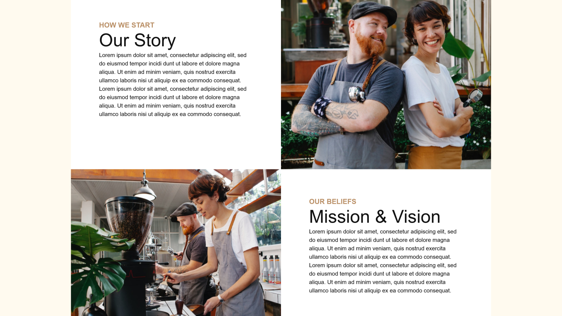 - Shop: A well-organized product catalog with categories for coffee blends, groceries, and gourmet items.