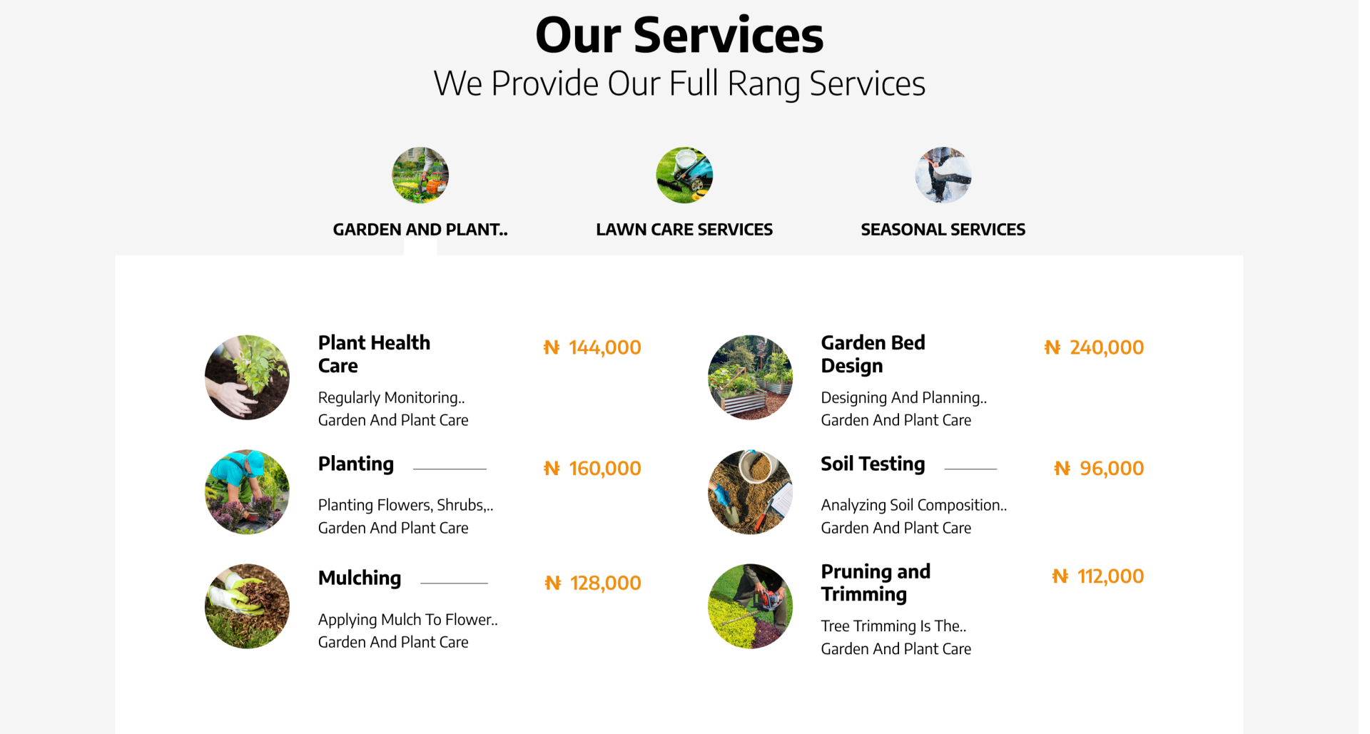 - Services: A detailed services page that outlines your offerings, from organic farming and landscape design to seasonal care and soil enrichment programs.