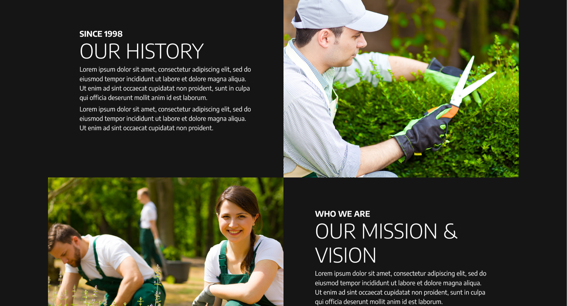 - About Us: Share your story, the vision behind your business, and introduce your team’s expertise in sustainable agriculture. Help clients connect with your dedication to the environment and green practices.
