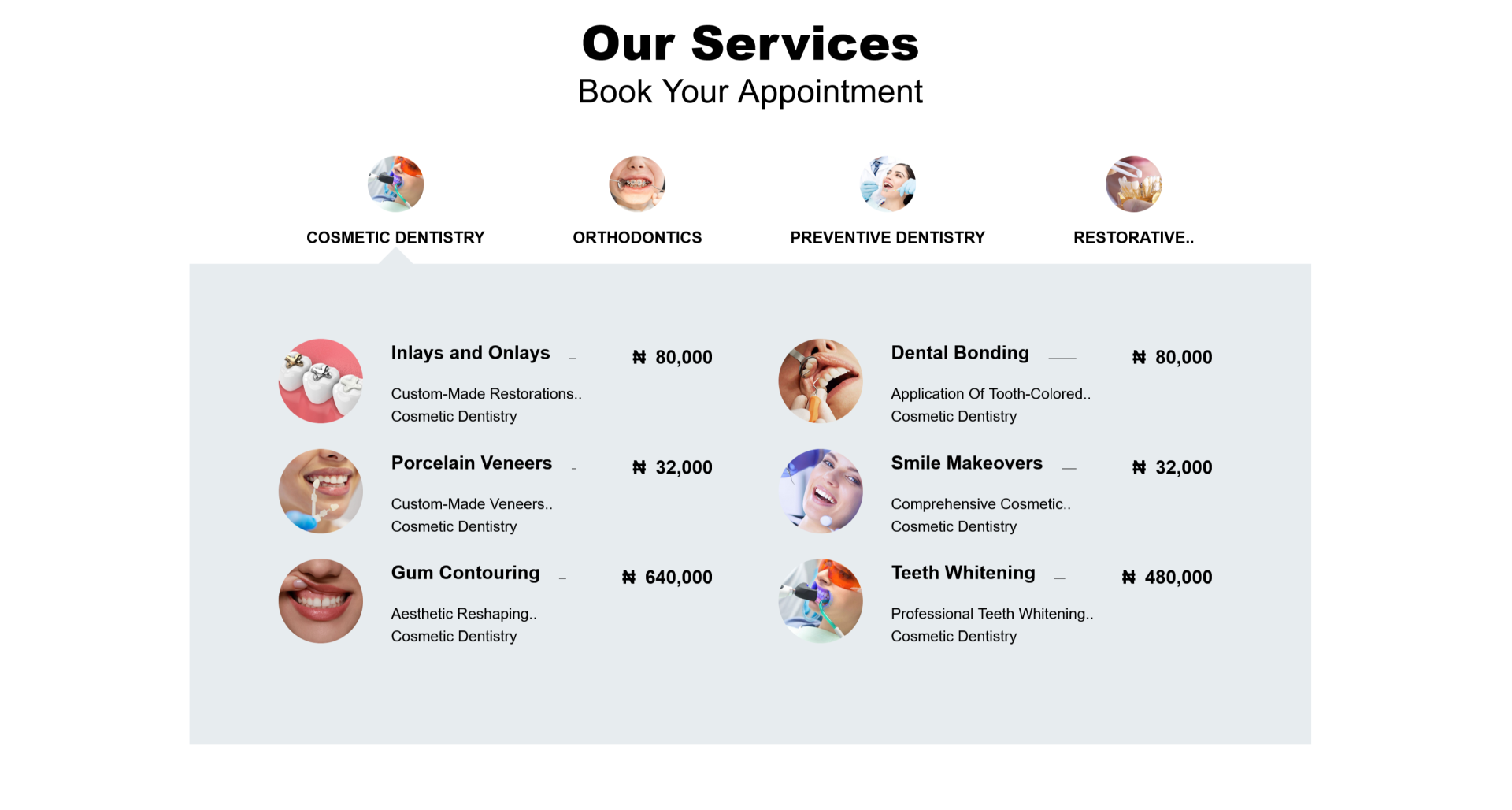 - Services: Highlight a comprehensive range of dental services and treatments, providing clear and informative content to empower patients in their care decisions.