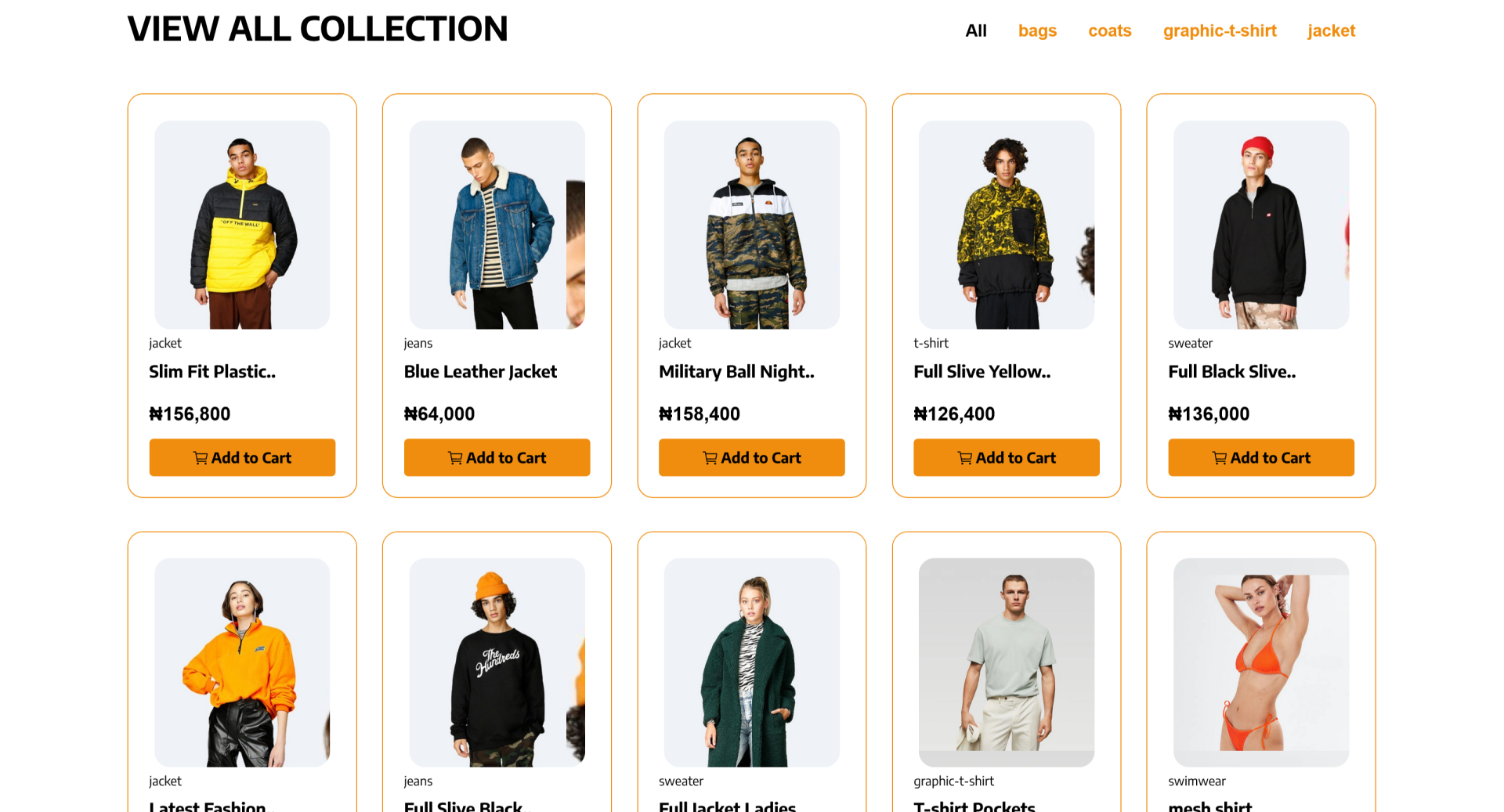 Showcase your brand’s diverse offerings with the Collections page. This section is designed to highlight seasonal lines, special releases, or exclusive items in visually stunning grids. It gives you the flexibility to organize and display your garments, allowing customers to view your collections with ease and elegance.
