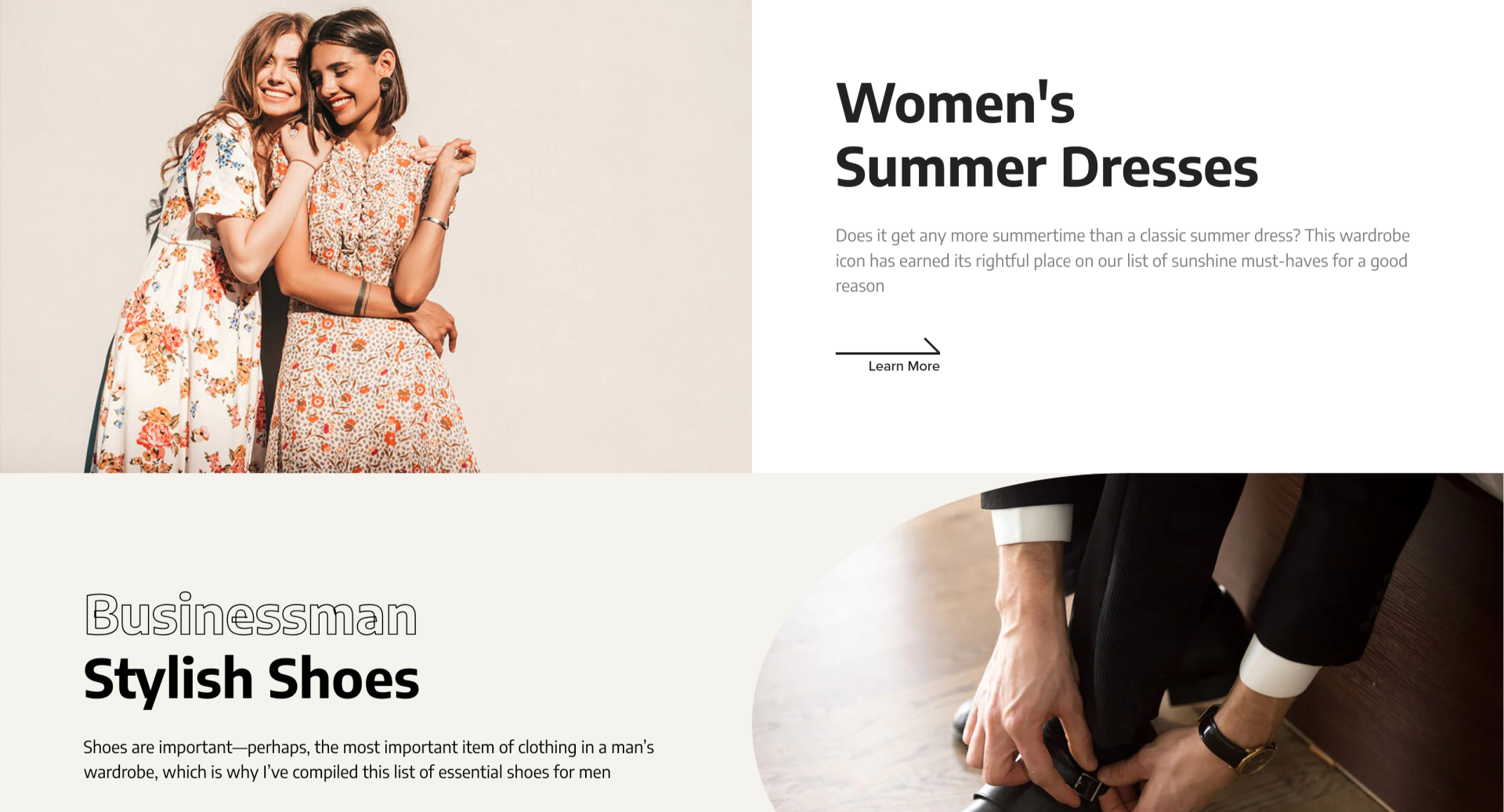 The About Us page is an ideal place to tell your brand’s story. With a clean and professional design, this page allows you to introduce your fashion journey, express your brand’s vision, and showcase your dedication to quality. It includes customizable sections where you can add your mission statement, team information, and the passion behind your brand.