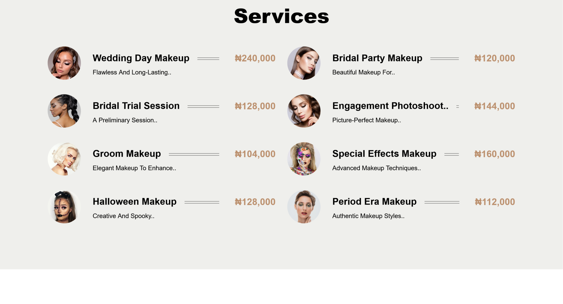 Gallery or Media Page: Highlight past work, transformations, or wellness visuals to build credibility.
