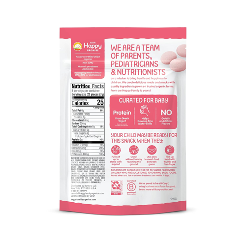 Happy Baby Organics Baby Snacks, Greek Yogis, Freeze Dried Yogurt & Fruit Snacks, Gluten Free Snack for Babies 9+ Months, Strawberry & Banana, 1 Ounce.