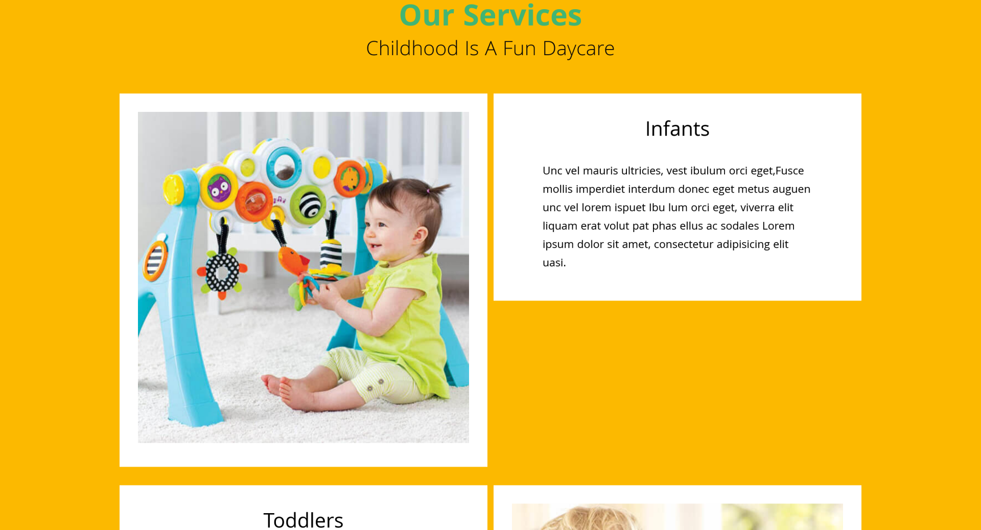 Service-Focused Pages: Showcase services like infant care, toddler programs, preschool learning, after-school activities, etc.