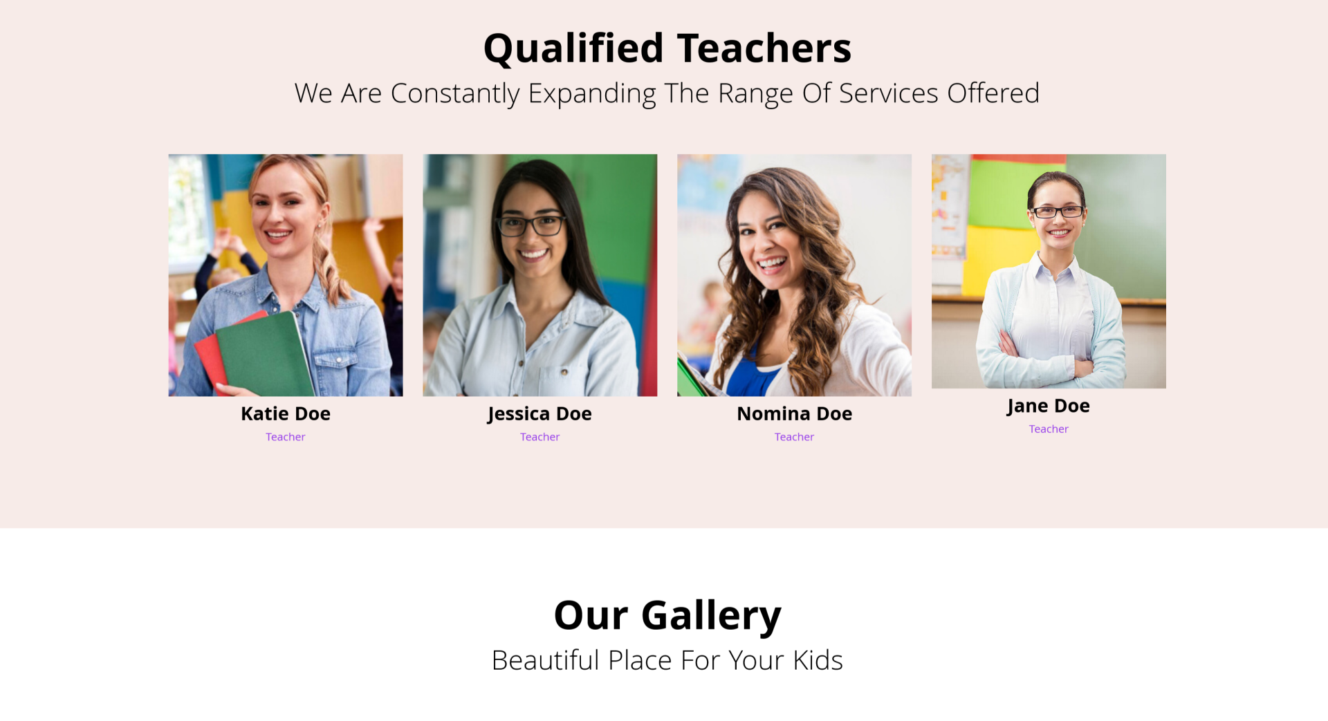 Gallery or Media Page: Display photos of facilities, classrooms, and happy children to build credibility.