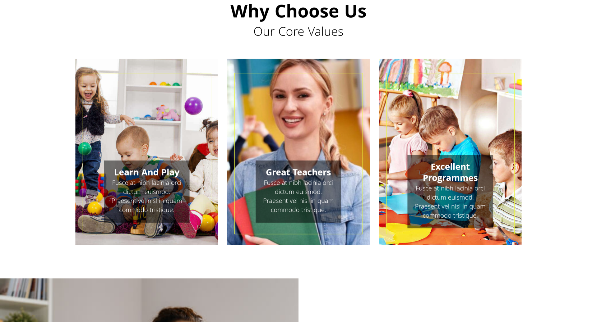 Service-Focused Pages: Showcase services like infant care, toddler playgroups, preschool programs, and teen mentoring.