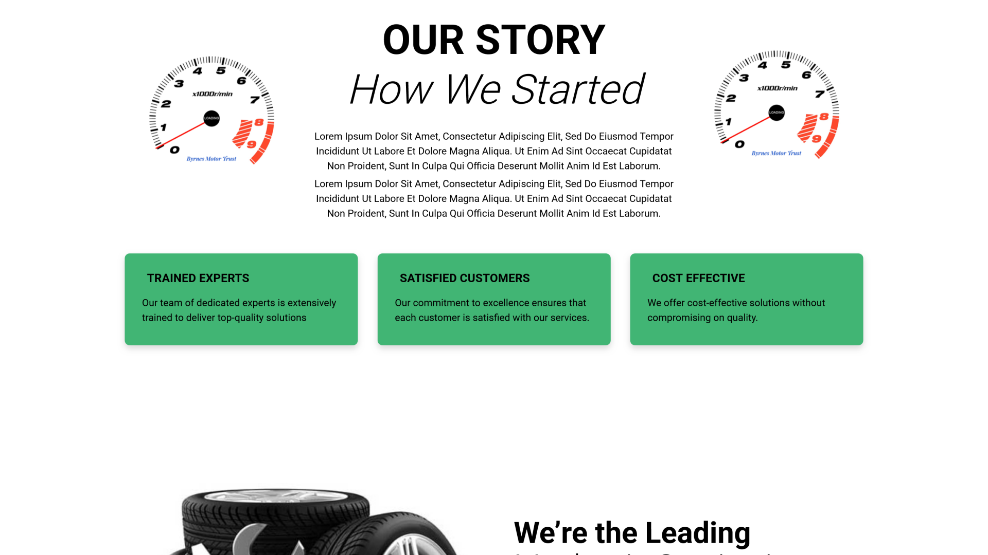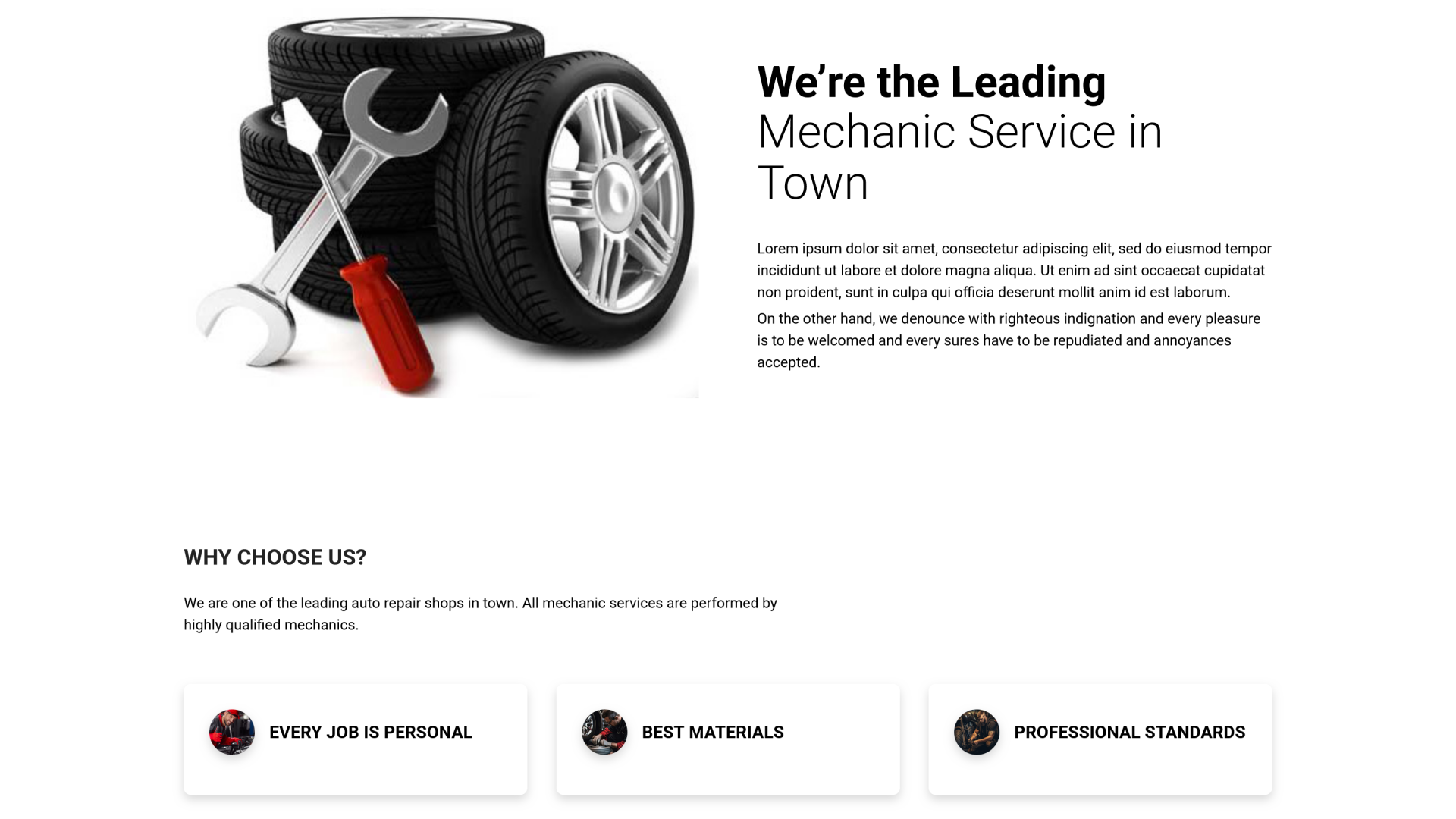 Service-Oriented Layout: Highlight key offerings like engine diagnostics, tire changes, battery replacement, brake services, and more.