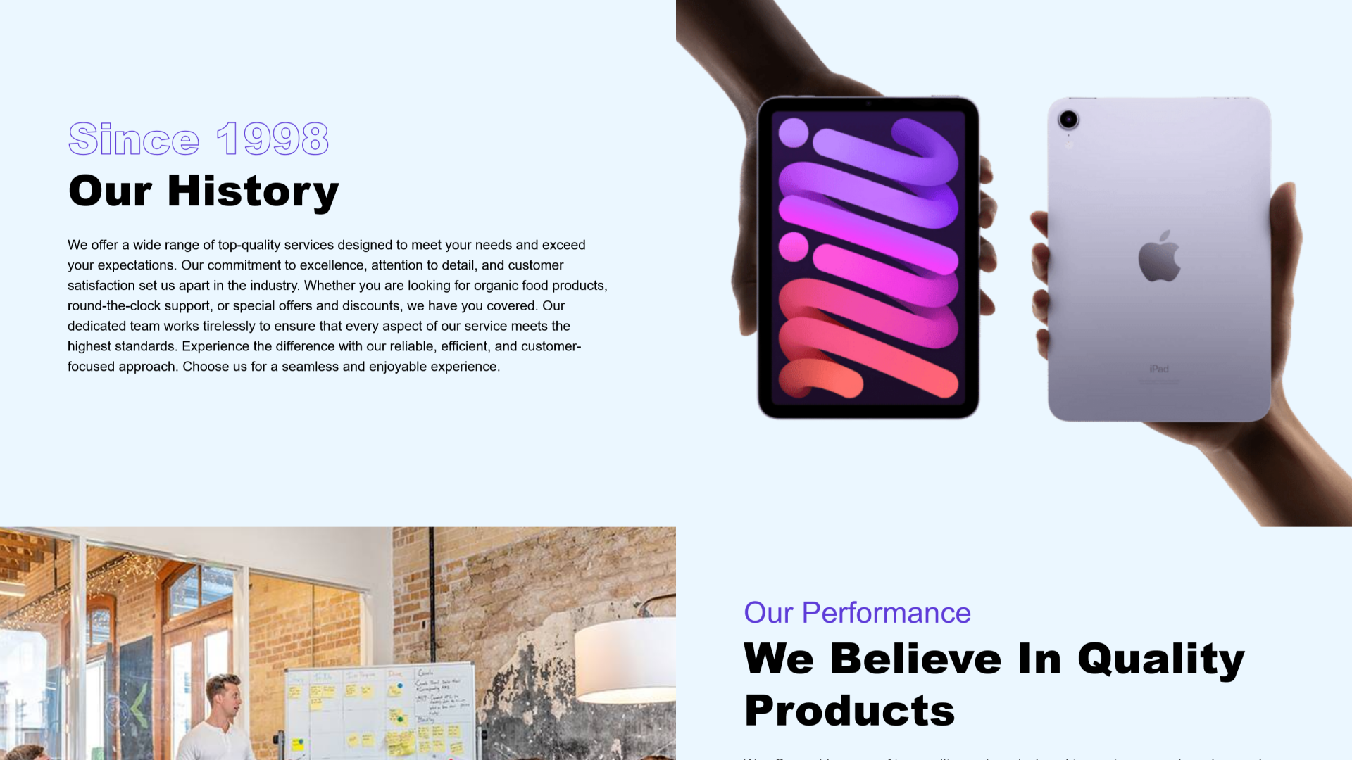 Service-Focused Pages: Showcase services like newsletter subscriptions, online shopping, and featured product highlights.