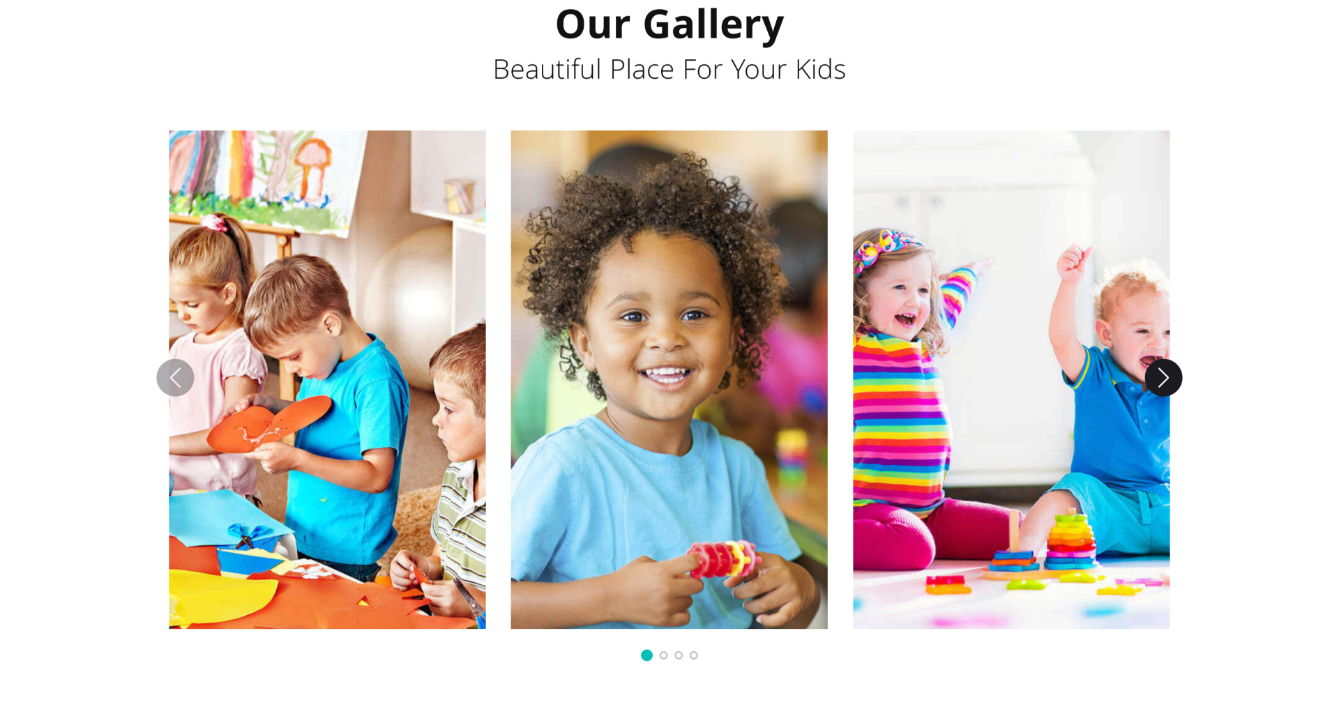 - Gallery: Give parents a look at your daycare’s playful environment through a photo gallery showcasing activities and spaces.