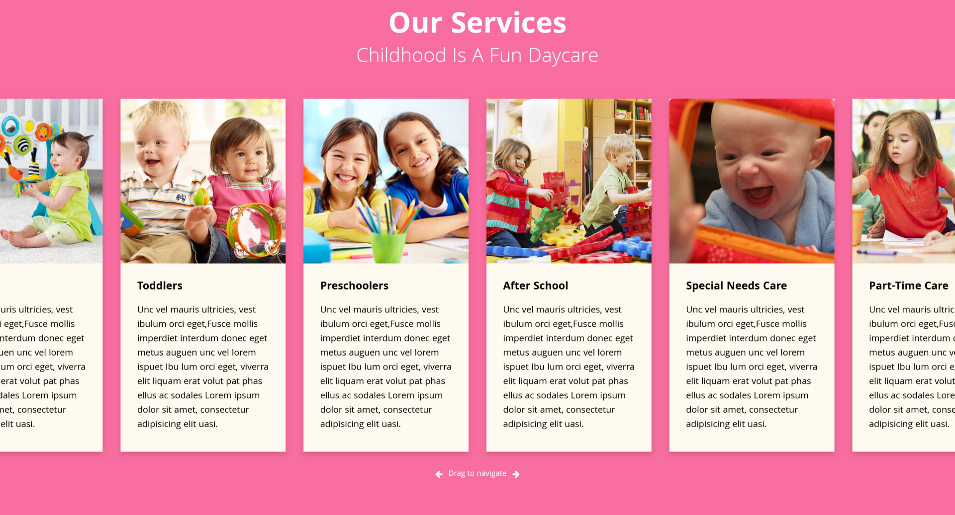 - Services: Showcase your various programs, including infant care, preschool care, after-school services, and more.