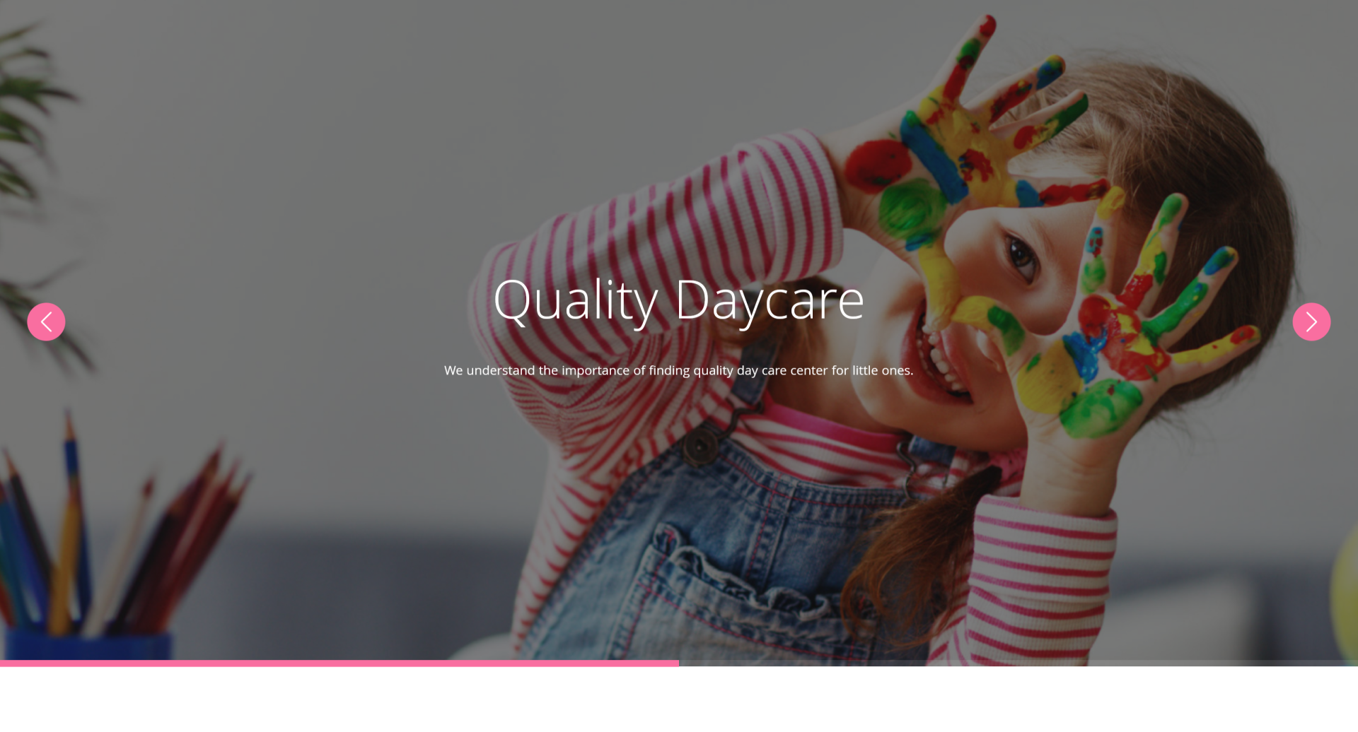 - Home: Greet visitors with a cheerful homepage that highlights your daycare’s mission and values.