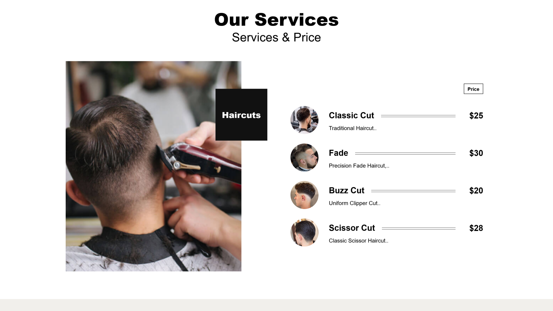 Gentleman is the ultimate solution for creating a strong digital presence for your barber shop. With its stylish design and practical features, this template not only showcases your talent but also makes it easy for clients to find and connect with you. Enhance your business and leave a lasting impression online!