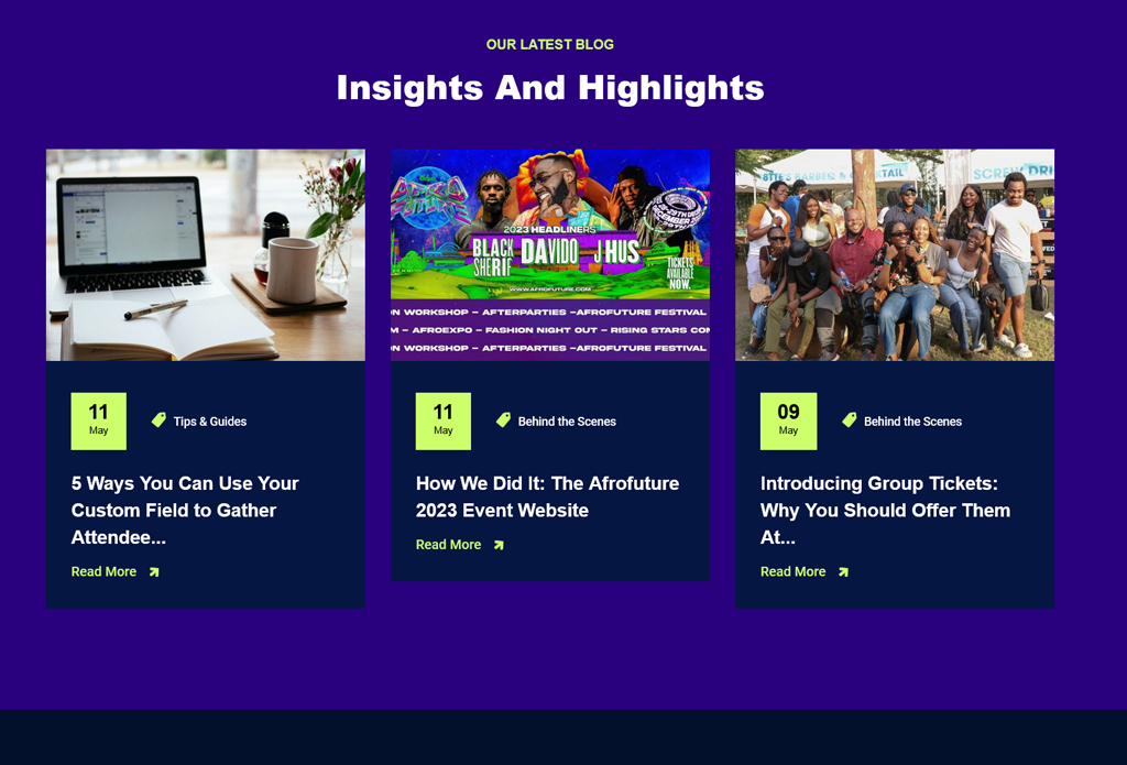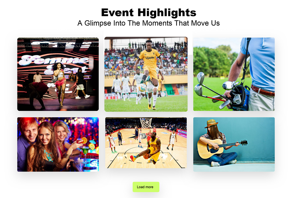 Gallery Page: Showcase unforgettable moments from past events to build hype and credibility.